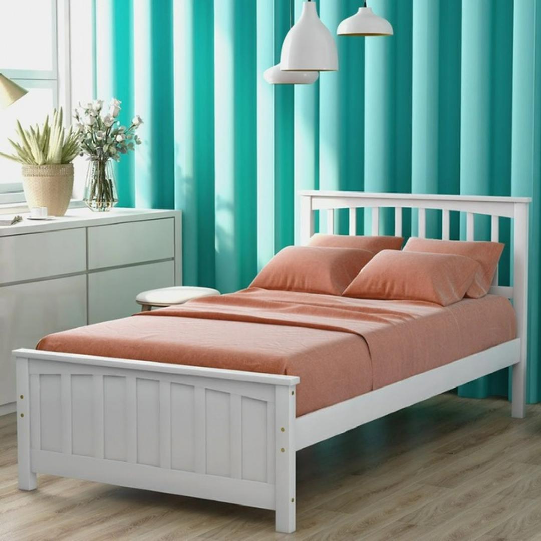 When your child outgrows the toddler bed, the twin sized bed will follow them into teen-years. This is a beautiful twin platform bed that would look great in any bedroom. The white color offers a blank canvas making it easy to accessorize to suit your personal taste while the headboard and footboard give it a classically inspired silhouette that makes it suitable for any room. Free mattress included. When your child outgrows the toddler bed, the twin sized bed will follow them into teen-years.