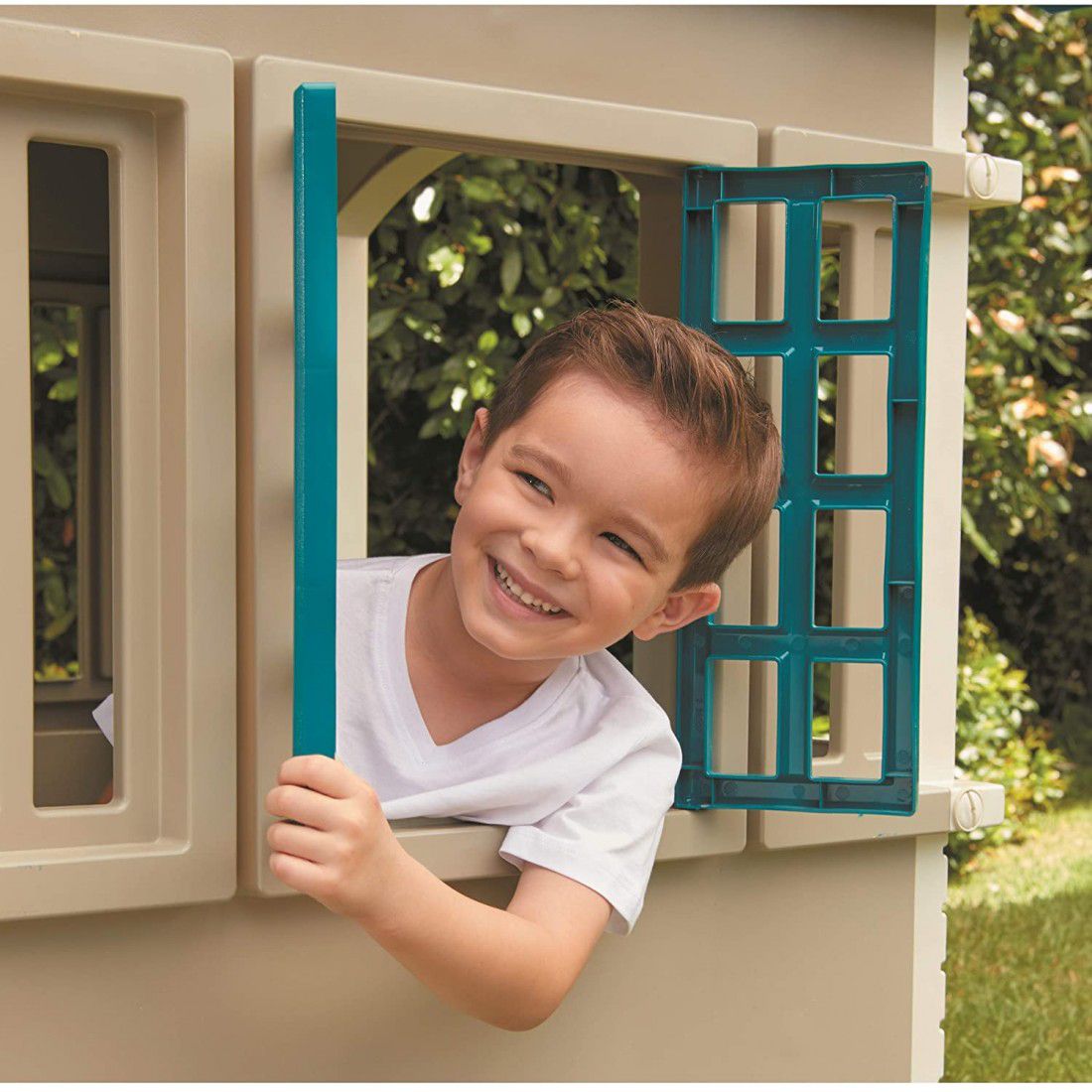 Take the fun on the go and set up anywhere with this Little Tikes Cape Cottage Playhouse. You'll love it just as much as the little ones. This easy-to-assemble kids' cottage playhouse can be set up in a snap. It features contemporary styling and has a mail slot and a flag holder to add to its sense of home. With two working doors, it's easy for toddlers to invite their friends to enter and leave the cottage. Set up this Little Tikes Cape Cottage Playhouse in the front yard, in the backyard or even in the living room. Watch their imagination unfold as they make their dreams reality in this little home. This Little Tikes cape playhouse has a compact size that makes it suitable for placing in or outside of just about any home.