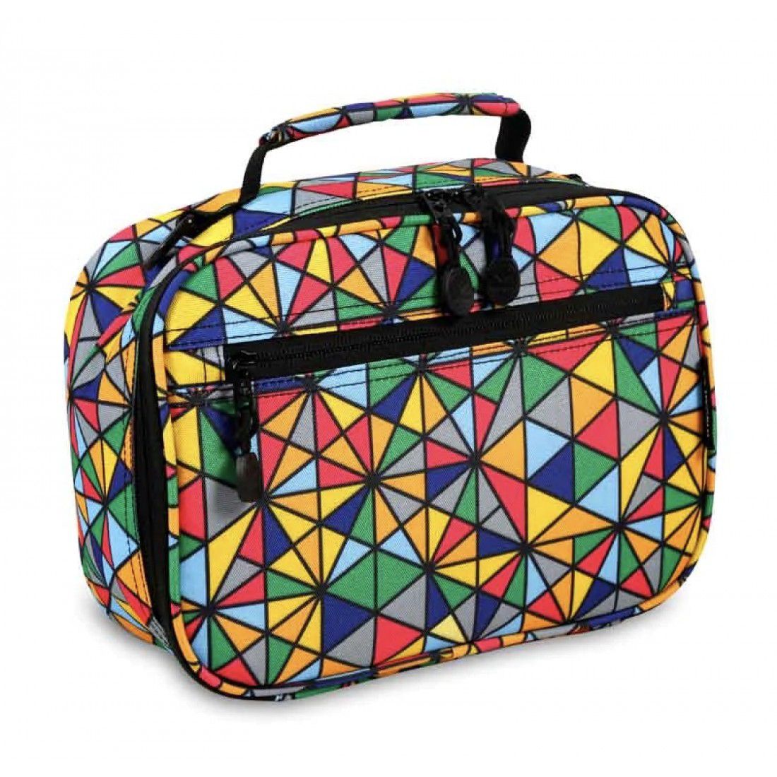 Available in a wide range of colorful patterns and vibrant prints, this lunch bag is perfect for kids that need to carry lunch to school. The J World New York Cody Lunch Bag is made from polyester fabric and features a classic rectangular shape with a colorful allover print, a padded top handle, and an adjustable shoulder strap that offers versatile carrying options. This lunch bag includes a zip around closure and a fully insulated main compartment that offers plenty of storage for a sandwich, snack, and beverage. An exterior zipper pocket provides added storage for utensils, napkins, and other small items.