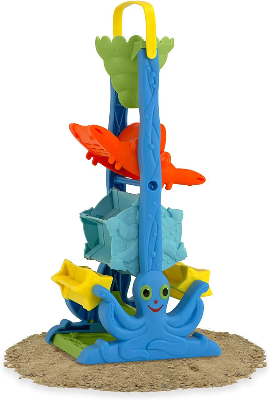 An exciting sand or water funnel for outdoor play. Different layers funnel, tip, spin and sift. Includes convenient carry handle. Bright colors and sea-creature decorations add to the fun. Part of Melissa & Doug’s Sunny Patch, a line of products that encourages exploration and outdoor play.