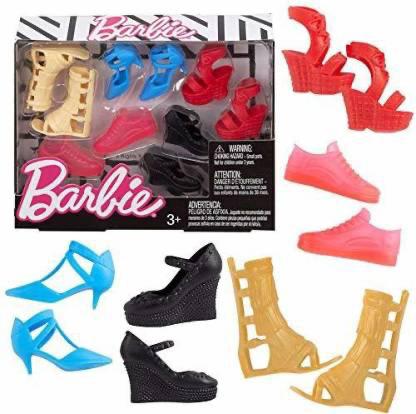 Help Barbie doll (sold separately) put together an outfit for any occasion with this fabulous shoe pack. The accessory set includes five awesome pairs of shoes fitted to Curvy and Tall Barbie dolls. The shoes include a mix of heels and flats, colors and trends.