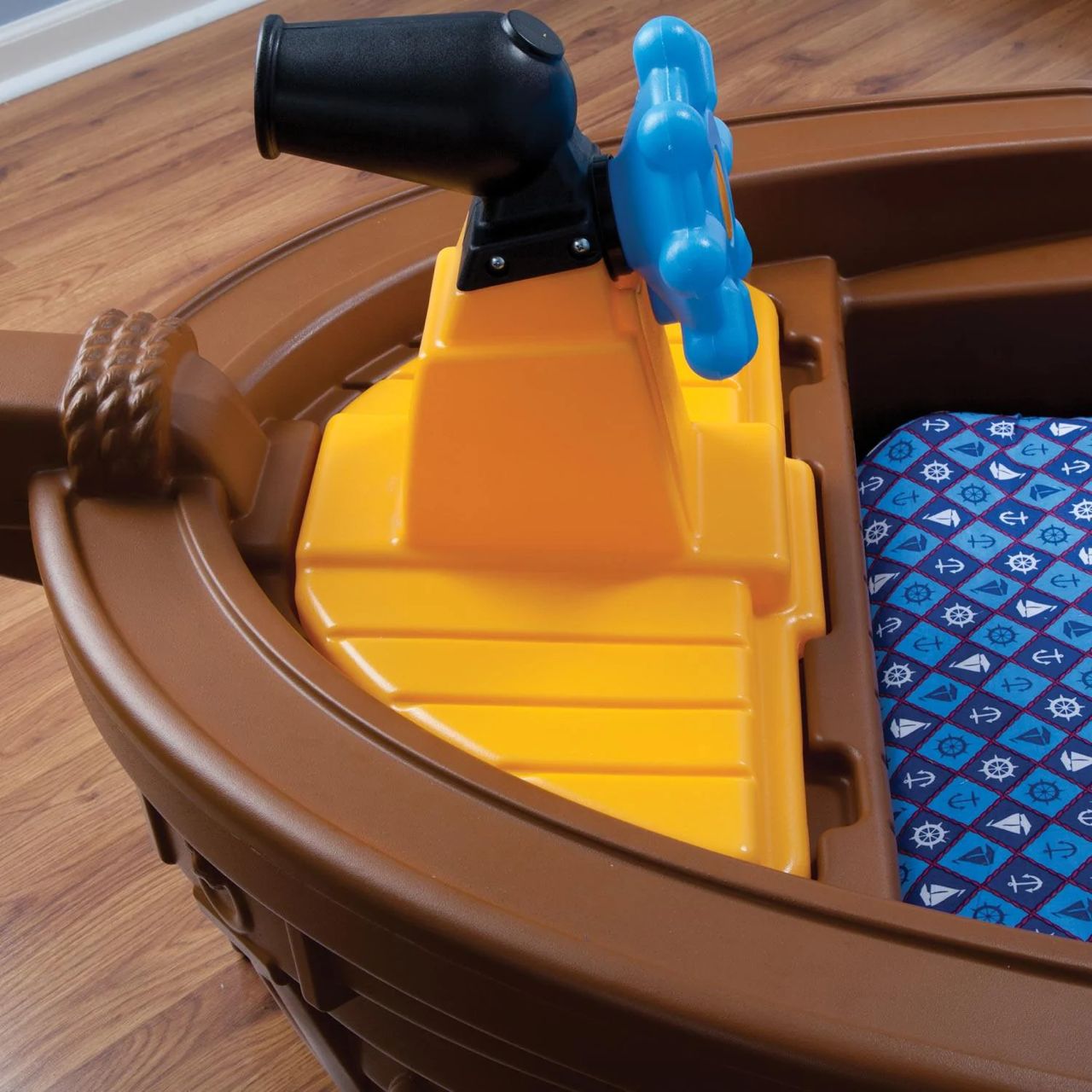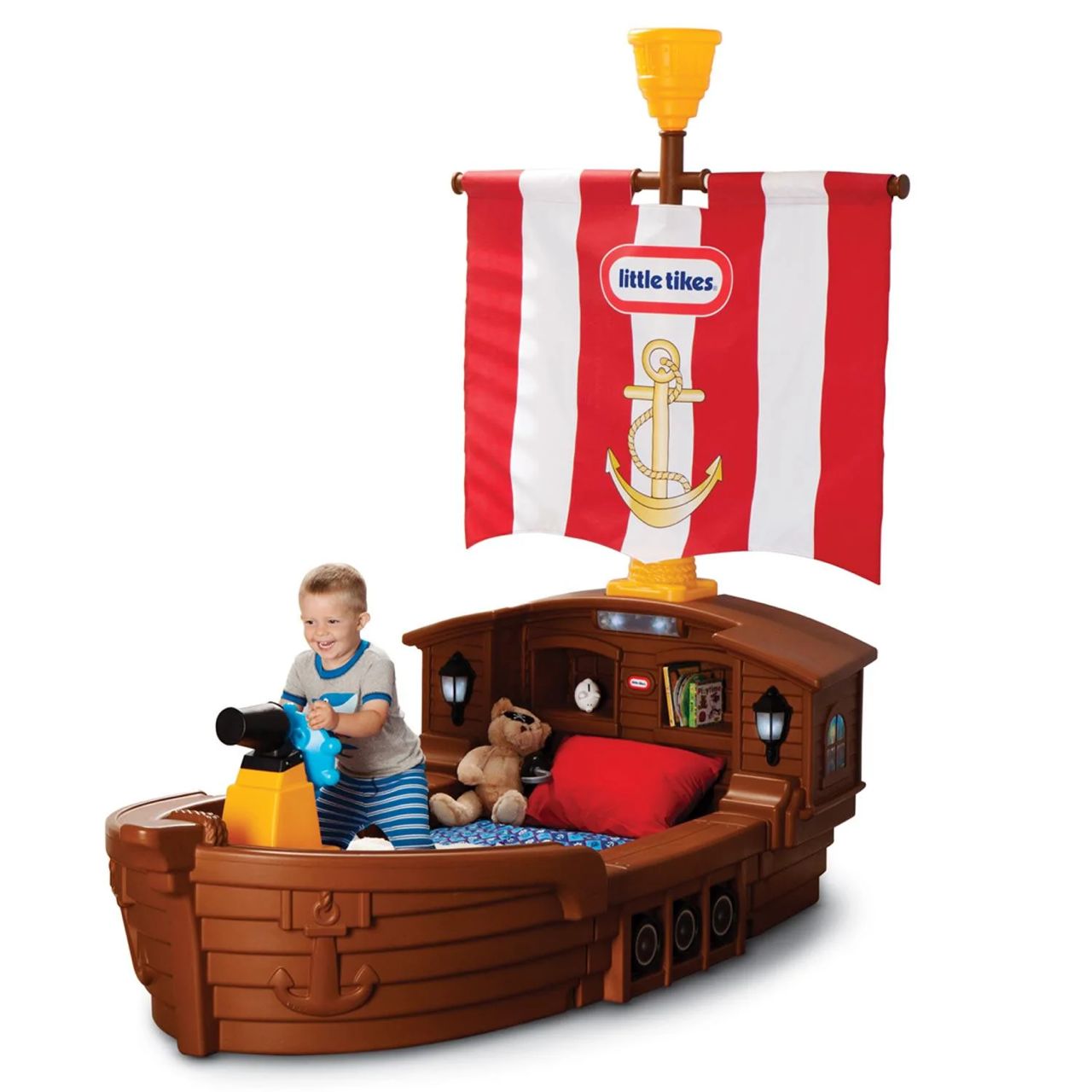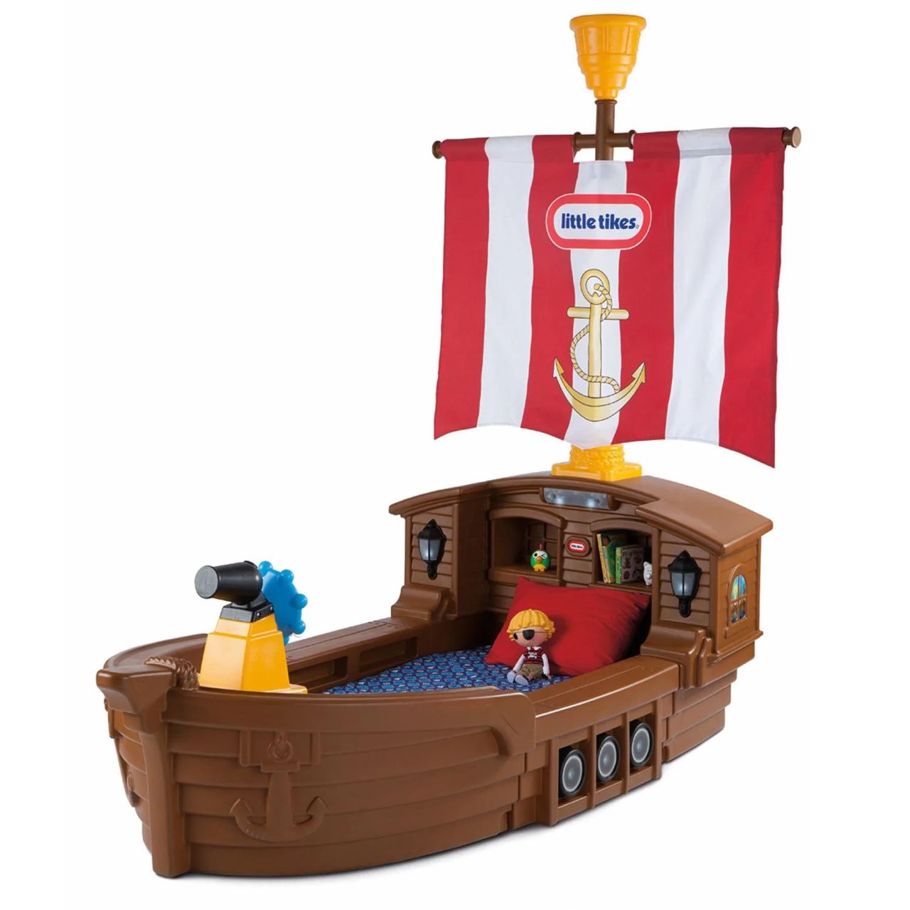 As toddlers drift off to sleep in their very own boat they can dream of a big fish they will catch one day! This bed is so fun kids will enjoy going to bed. Turn on the nightlights and they will be all set to snuggle in for the night. Made in USA with US & imported components. Toddlers will have a treasure of a time in their bedroom with the Pirate Ship Toddler Bed! This bed will be fun on a rainy day for kids to play pirates, pretend to be fishing or just playing with their toys that are stored right inside the toy box! This bed is full of adventures just waiting to begin!