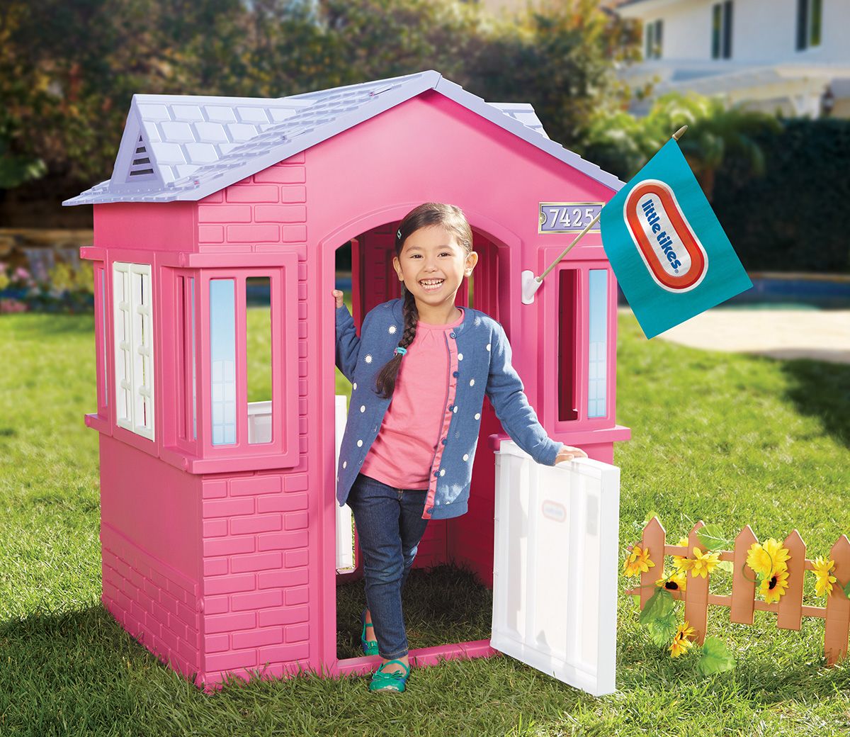 Let your little one live in effortless style! With modern windows, arched doors and brick details, this is one of our more contemporary playhouses for kids. With two working doors and windows with shutters, as well as details including a letter box and flag holder, little ones will have a whale of a time playing ‘house’. It might only be small in design, but this characterful cottage packs in a lot of fun! See all our playhouses here!