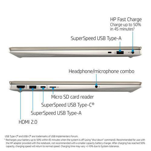 External ports1 HDMI 1.4b; 1 headphone/microphone combo; 1 RJ-45; 2 USB 3.1 Gen 1 (Data transfer only); 1 USB 3.1 Type-C™ Gen 1 (Data Transfer Only, 5 Gb/s signaling rate); 1 AC smart pin