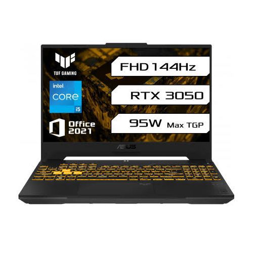 ASUS TUF GAMING F15- Intel core i7-12700H@2.7ghz 14cores Processor, 12th generation, 512GB M.2 Nvme SSD, 16GB DDR5 RAM, 4GB NVIDIA RTX 3050 Dedicated Graphics Card, 15.6” FHD 144Hz Screen display, Bluetooth, Wlan, RGB Backlit Keyboard, Windows 11 Pro, Color: Jaeger GrayIncludes: Asus TUF GAMING BACKPACK & MOUSE
