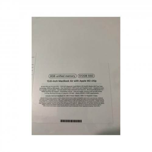 Apple M2 ChipNow packed with 20 billion transistors, the Apple M2 integrates the CPU, GPU, Neural Engine, I/O, and more into a single system on a chip (SoC). The additional transistors, 25 percent more than the M1, improve the features of the chip, including the memory controller that can deliver up to 100 GB/s of unified memory bandwidth. The M2 has faster performance cores with a larger cache and the efficiency cores have been enhanced for more performance gains. Together, the M2 delivers up to 18 percent greater multithreaded performance than the M1. This means the Apple M2 performs up to 1.4 times faster than the previous generation M1 while still delivering battery life of up to 15 hours of wireless web browsing and up to 18 hours of video playback.13.6" Liquid Retina DisplayThe MacBook Air now features the 13.6" Liquid Retina Display, with support for one billion colors. The 2560 x 1664 resolution provides crisp text. The 500 nits of brightness and wide P3 color gamut ensure that photos and movies are brilliant and vivid, complete with rich contrast and sharp detail.Compact DesignThe MacBook Air lives up to its name, weighing in at just 2.7 pounds and measuring just 0.44" thin. The durable enclosure features 100 percent recycled aluminum. The MacBook Air also features a silent, fanless design.Full HD 1080p FaceTime CameraNow with a Full HD 1080p FaceTime camera, the MacBook Air allows you to look your best during video calls. The three-mic array features advanced beamforming algorithms to capture clean audio, allowing your voice to come through loud and clear.MagSafeThe MacBook Air now features the quick-release MagSafe power connector. MagSafe can easily attach and detach with magnets, preventing any unintentional disconnects.True Tone TechnologyWith True Tone technology, the display delivers a more natural viewing experience for design and editing workflows, as well as everyday tasks like browsing the web and writing email.Touch IDThe advanced security and convenience of Touch ID is built into the MacBook Air. Simply place your finger on the integrated Touch ID sensor and your MacBook Air unlocks. Use your fingerprint to immediately access locked documents, notes, and system settings. You can also use Apple Pay securely during checkout while online shopping. No need to enter shipping or billing info, and your card details are never shared.Magic KeyboardThe Magic Keyboard on this MacBook Air features a scissor mechanism that delivers 1mm of key travel. There's also a physical Esc key and an inverted "T" arrangement for the arrow keys. Combined with the Touch ID, the Magic Keyboard provides a comfortable, accurate typing experience.Thunderbolt 3 with USB4 SupportThunderbolt 3 is a hardware interface that utilizes the reversible USB Type-C connector. Doubling the speed of its predecessor, Thunderbolt 3 features a maximum throughput of 40 Gb/s when used with compatible devices. The connector also supports USB4, allowing you to connect to more peripherals, including the Apple Pro Display XDR in full 6K resolution.Performance FeaturesFor intensive workloads like editing complex timelines in Final Cut Pro, performance is nearly 40 percent faster than the previous generation and up to 15 times faster for customers that haven't upgraded to Apple Silicon.Applying filters and effects in apps like Adobe Photoshop is up to 20 percent faster than before and up to 5 times faster for customers that haven't yet upgraded to Apple Silicon