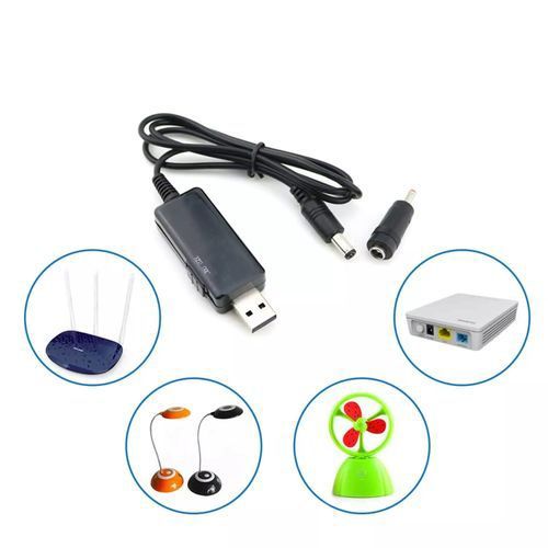 This DC converter USB Cable converts the 5V DC output power of your normal Powe rbank to 9V or 12 V DC required to power your Fibre Optics or 4G Internet Router.