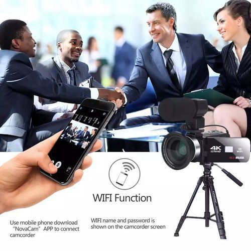 Video Camera with Microphone 4K Camcorder for Live Stream WiFi Remote Control Night VisionPhotography
