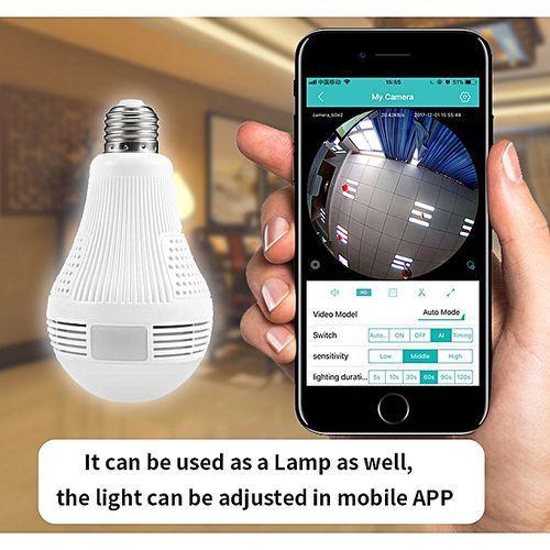 360 Degree angle of view, Zero blind spots: The 360 degree fish eye lens in this light camera gives you a super wide angle of view with no blind spot. You can therefore see everything going on at any given time, making this bulb camera ideal for keeping your property surveilled all around the clock