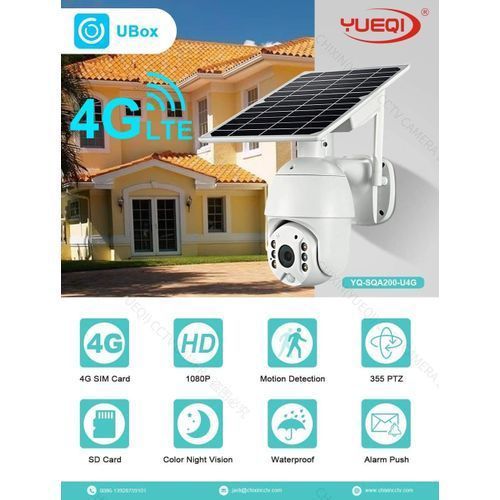 Quick DetailsPlace of Origin:Guangdong, ChinaBrand Name:OEM/ODMModel Number:S10-4G VersionSensor:CMOSSpecial Features:Waterproof / WeatherproofData Storage Options:Cloud, Memory CardVideo Compression Format:H.264Product name:Solar Energy Alert PTZ CameraResolution:1080P(1920*1080)Technology:S10-4G Version onlyBattery:10000 mahFeature:IP65 Weatherproof Solar panal poweredImage Sensor:1/2" progressive CMOS sensor, blacklight full colorIR Distance:10mNight vision:Within 15 MetersColor:WhiteWarranty:1 Year