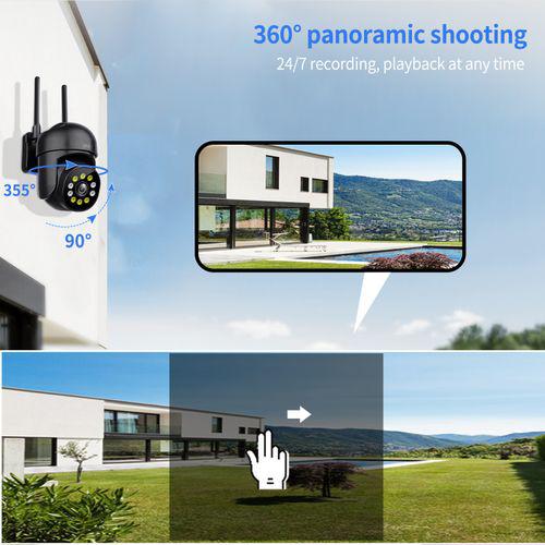 Smart home surveillance camera with remote control, you can view any position and any detail required in 360 no dead angle, tilt 355, tilt 90. Built-in IP camera microphone and speaker, you can set the automatic tracking mode in the app; and manually turn on or off the alarm function.