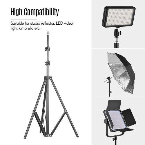 Max. height is 176cm / 5.8ft, and max. load capacity is 3kg / 6.6lbs, suitable for studio reflector, softbox, LED video light, etc.