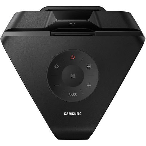 The party never stops with the MX-T70 Giga Party 1500W Wireless Speaker from Samsung. This portable speaker can be placed indoors or outside thanks to its splash-resistant top panel. Wherever you put it, the bi-directional sound design works to fill the space with your favorite music. The 1500W of audio power is pumped through a 1" tweeter, 5.25" mid-woofer drivers, and a 10" subwoofer for deep bass. If you need to increase the low end even further, just press the Bass Boost button. The MX-T70 takes the party to another level of fun with a host of party features, such as built-in LED lights, karaoke mode, and the ability to expand your setup with Group Play.