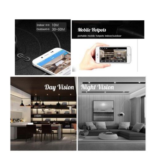 Specifications:Material: Aluminium alloySize: 5*4.5*4.5cmColor: blackResolution Ratio: 1080P/720PVideo Format: AVIMemory Card Type: support Micro SD card up to 128GB, (TF is not included)Compressed Format: H.264APP Support: Android/iOS150°Wide-angleBattery working time: 60 minutesSupport Night versionWifi controlled by Cellphone or computer