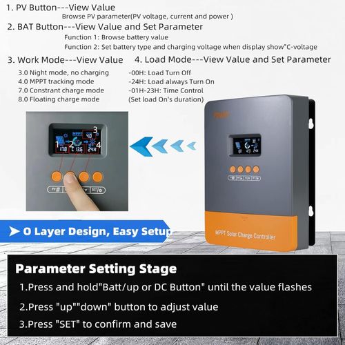 Note:This solar charge controller is one of our best-selling products, which has been recognized by many customers for its stable performance, fast heat dissipation and low failure rate. If you have any questions about this product, you can contact me at any time, looking forward to your purchase.