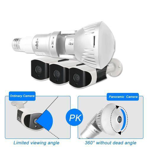 360°panoramic camera:HD 1080P LED bulb wireless 360 degree panoramic camera without blind area,which can give it well coverage of the entire room to monitor each and every corner of your home and office,a good monitor to protect your important things,baby, pet when you are away from home.