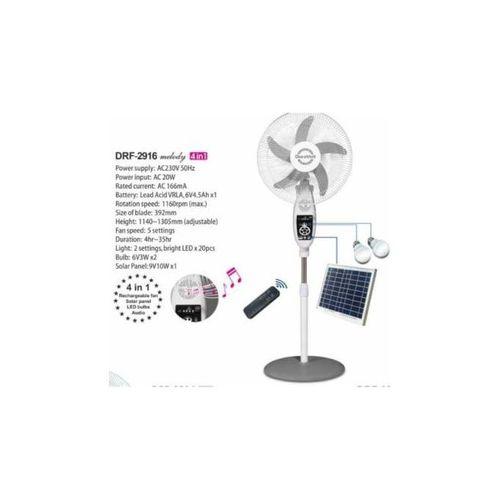 With its combination of cooling, lighting, and solar recharging capabilities, the **3-in-1 R/Fan DRF-2916 melody* is a must-have for anyone looking for a reliable and eco-friendly solution to beat the heat and light up their space.