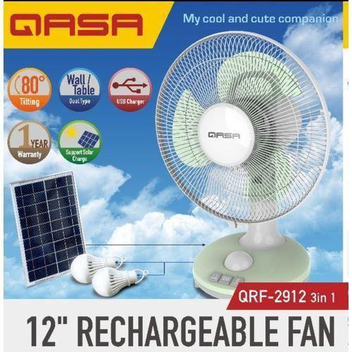 0 reviews for Qasa 3-in-1 12 Inches Rechargeable Table Fan With Solar And Bulbs