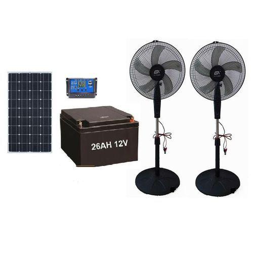 It is solely a DC Fan. you do not need electricity to power it. just connect your 50W solar panel to the 26Ah battery and enjoy a 5 days non stop cool freeze on both fans