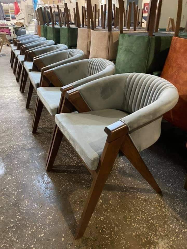 This dining chair comes with armrests for added comfort and support. Its unique shape allows for a cozy and snug seating with firm balance. The chair is perfect for relaxation and lounging, and its design adds a touch of elegance to any room. Made from high quality materials, this chair is both durable and comfortable, providing a comfortable seating experience.