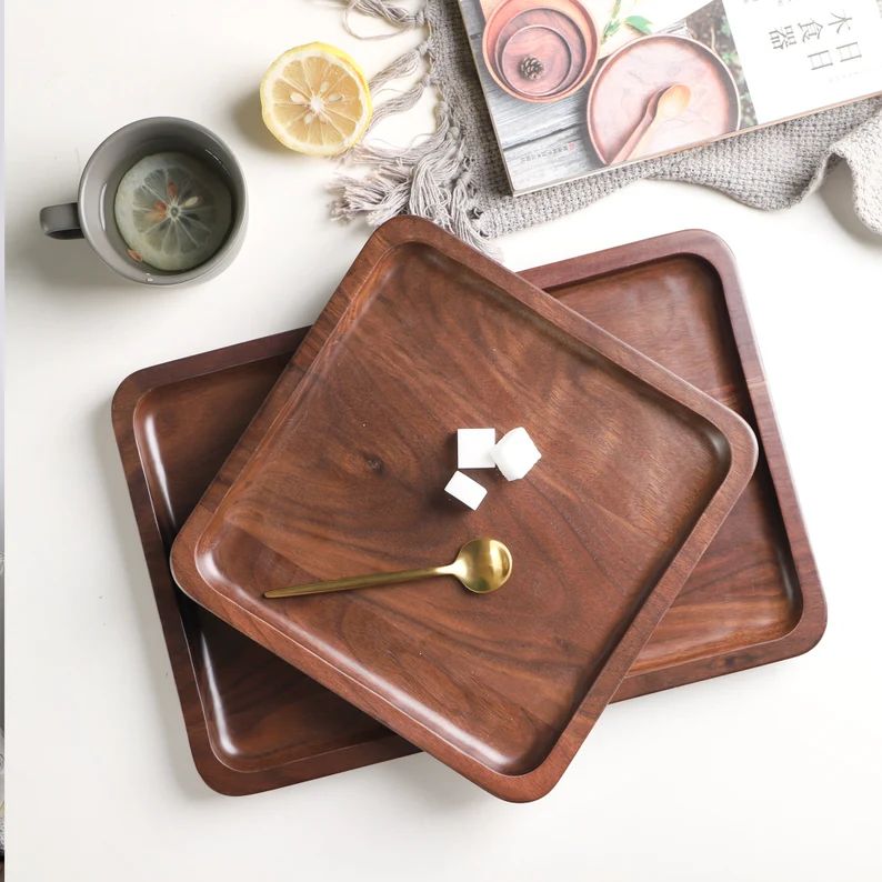 Your cups, mug, spoons can be set in an orderly manner on this tray while you serve family or guests. This tray sleek design helps enhance the appearance of any table setting, it can also be used to carry other kitchen items, so it’s versatile. This tray’s wooden construction enhances its durability, so it lasts long.