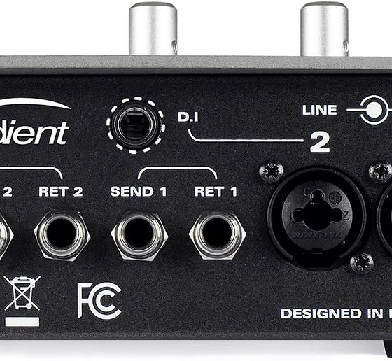 The analog I/O includes two Neutrik XLR-1/4" combo mic/line inputs and a harmonically rich JFET DI input, which is designed to replicate the input stage of a classic valve amplifier—plug your guitar, bass, keyboard, or drum machine straight in and start recording instantly.