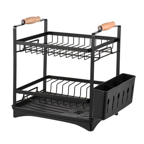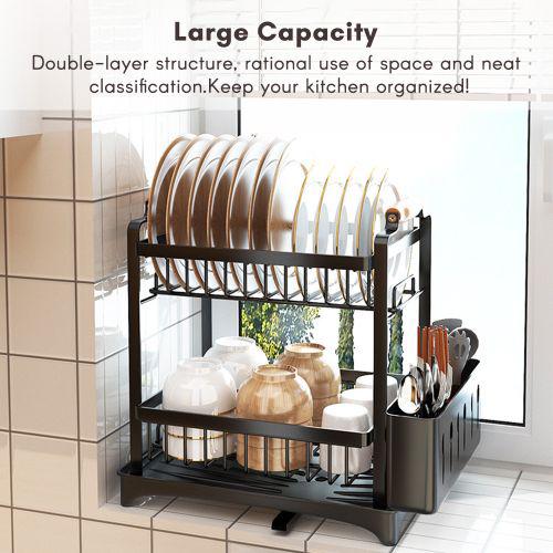 2 layer dish rack have enough space to storage bowls and other kitchen utensils.The first layer holds up to 10 plates, the second layer holds up to 20 bowls, making it ideal for your limited kitchen countertops.