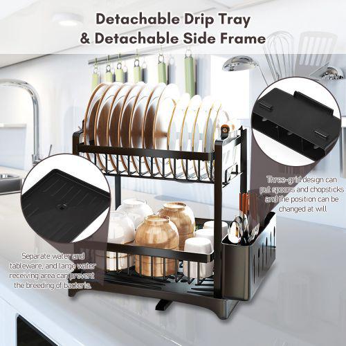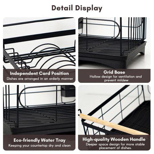 【Multi-functional Storage Rack】Drains moisture from dishes quickly. Multiple compartments, neat and orderly, high-efficient for saving kitchen space.