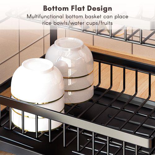 【Large Capacity】2 layer dish rack have enough space to storage bowls and other kitchen utensils.The first layer holds up to 10 plates, the second layer holds up to 20 bowls, making it ideal for your limited kitchen countertops.