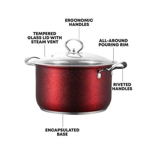 Enhance your culinary experiences with the Epoque Stainless Steel Stockpot Set, where resilient functionality meets innovative design. Infuse a dash of modern sophistication into your kitchen and elevate your cooking endeavors with this exceptional set of four stockpots. Constructed from premium stainless steel, these stockpots are engineered to withstand the rigours of a busy kitchen. The sturdy build ensures uniform heat distribution, while the crackled finish enhances the pots' durability, guarding against scratches, stains and wear. The contemporary and stylish look of the crackled finish makes these pots an attractive addition to your kitchen decor. Tight-fitting lids seal in moisture and flavours, ensuring that your culinary creations are as delectable as possible.