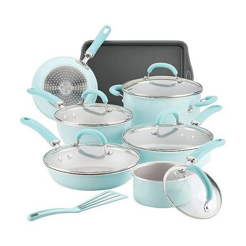 Rachael Ray Aluminum Nonstick Cookware Set 13pcs Light Blue Shimmer