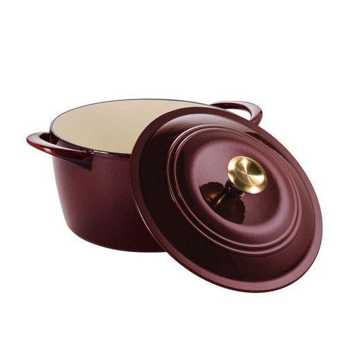 Rich enameled finish offers elegant kitchen to table serving for slow-simmered casseroles, hearty soups, stews, tender roasts, and braised ribs Perfect for traditional slow simmering with superior heat retention and distribution Long -lasting, easy-to-clean porcelain-enamel finishes and Stainless steel knob on lid with gold finishSelf-basting condensation ridges on lid uniformly collect and direct vapors onto food Compatible with gas, electric, ceramic glass and induction cooktops and Oven-safe up to 450°F /232°C