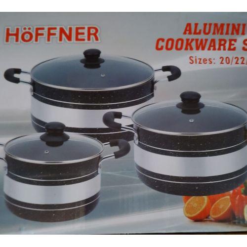 26,28,and 30 sizes to accommodate all your cooking needs. It comes in an attractive colour, sure to add charm to your kitchen décor. Its vented glass cover traps heat inside for optimum cooking. All the flavour and nutrients will be retained properly. Visibility while cooking is also possible with its transparent cover. It comes in a set of three so you can cook different meals simultaneously.The Non-stick Aluminum Pot Set will be a great addition to your kitchen. It is made from high grade aluminum so you are assured it will stand the test of time. It comes in 1