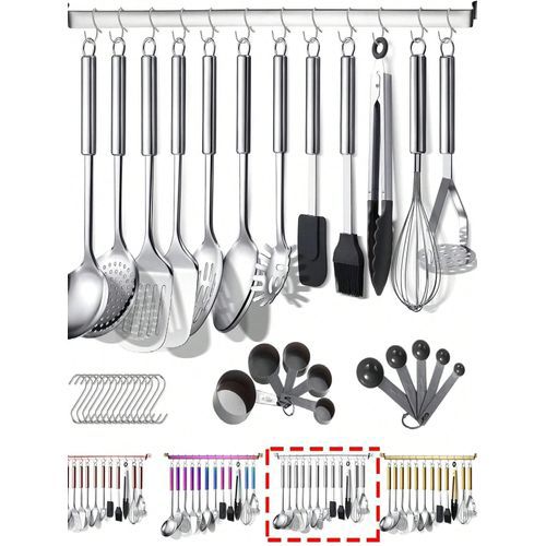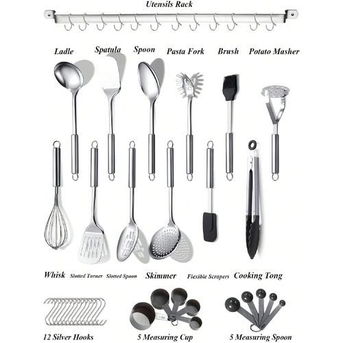 Berglander Kitchen Utensils Set 37 Pieces, Stainless Steel Cooking Utensils Set, Kitchen Gadgets Cookware, Kitchen Tool Set With Utensil Holder Rack And Hoo For Hanging Dishwasher Safe