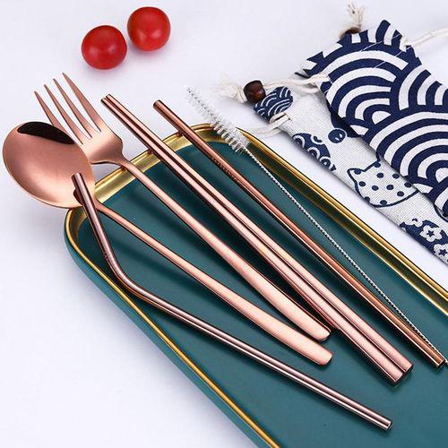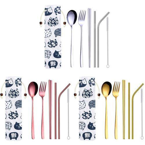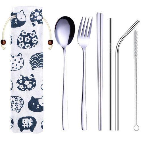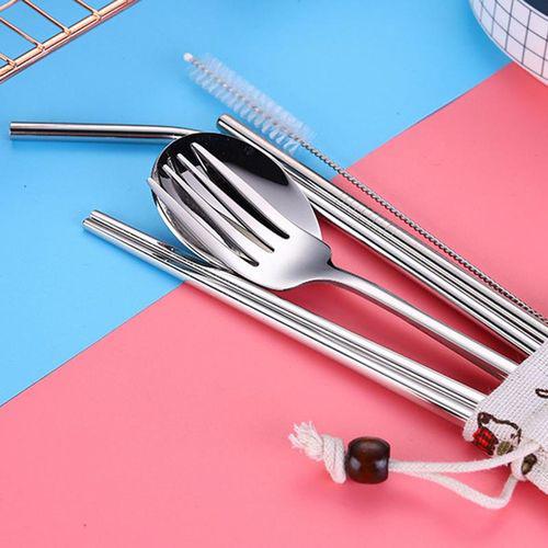 Name:Dinnerware Set Stainless Steel Portable Cutlery Chopsticks Fork Spoon with Metal Straws Cocktail for Travel Cutlery Set Silver