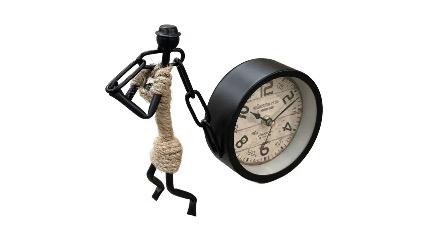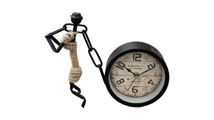[6/2, 5:27 AM] Spop Manager: This Man Pulling Clock Ornament is a creative and eye-catching decorative piece that blends industrial art with functional design. Featuring a minimalist black metal figure, the ornament depicts a man in a dynamic pose, gripping a thick rope and appearing to pull a classic round clock. The clock itself has a vintage-style face with bold numerals and a weathered background, adding a touch of old-world charm