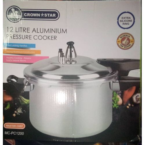 The Crown Star 12 Liter Pressure Cooker cooks food faster than regular cooking pots; it has a triple safety system that helps to secure to lid and prevent any form of accident. The gasket release mechanism allows for excess pressure to go out of the cooker.