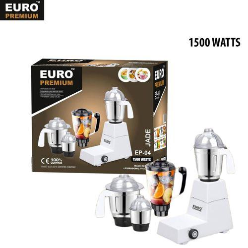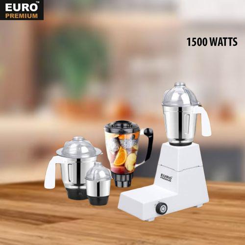 The Euro Mixer and Grinder is specially designed for your mixing , blending and grinding needs.With the help of its strong multifunctional blade system ,crushing and blending nuts ,seeds,and beans has become easier.It's durable 1500 watts heavy duty pure copper motor can run for minutes non stop, It is a powerful ,efficient and long lasting product.Great buyer/user experience assured.The Mixer and Grinder is specially designed for your mixing , blending and grinding needs.With the help of its strong multifunctional blade system ,crushing and blending nuts ,seeds,and beans has become easier.It's durable 1500 watts heavy duty pure copper motor can run for minutes non stop, It is a powerful ,efficient and long lasting product.Great buyer/user experience assured.Multifunctional blade systemCan crush and blend Nuts, Seeds and Beans smoothlySturdy stainless steel jars.100% copper motor which can last for minutes non-stop 1500watt heavy duty motorWet/dry grinding functionMotor overload protectorEasy grip jar handle Durable Great buyer/User experience assured