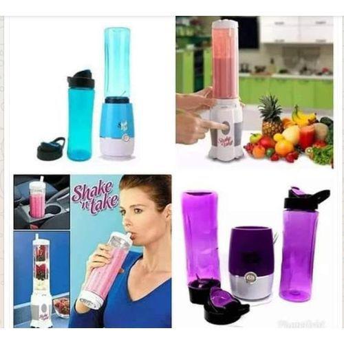 Smoothie Maker/Mini Blender With Two BottlesConveniently sized, the Shake-n-Take Sports Bottle Blender is ideal for protein shakes and smoothies on the go. Instantly blend smoothies and protein shakes and go! Blend and drink from the same bottle. Crushes ice instantly. Just blend and go! Features: Convenient flip top straw, super powerful blender crushes ice instantly, fits in car cup holders and easy to clean. A quick breakfast solution for families on the go! Add fruit to create a healthy fun snack!Blend a different drink for each of your friends! The perfect size for a light meal or treat at work. Add a scoop of your favorite protein and head for the gym. At home or on the road, just blend and go!.Motor Base Power input: On/Off power switch with safety interlock Momentary contact.