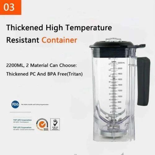 Adjustable 2200watts motor that is heavy duty, am imaculate 28000 rotations per minute, adjustable variable speed, pulse switch, stainless steel blades, safety switch and overheat protection, this commercial blender stands as the ultilmate commercial blender. adjustable 2200watts motor that is heavy duty imaculate 28000 rotations per minute adjustable variable speed, pulse switch stainless steel blades safety switch overheat protection non slip feetThe Queen Commercial Blender