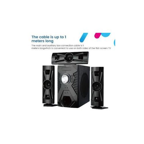 Bluetooth function.Speaker-K3MOn/Off Power SwitchUSB & SD Input(MP3 Player)Three Small SpeakerDrive Units: 6.5"*1+3"*3;6.5"=35W;3"=5W With FMDimensions: 442(L)x373(W)x387(H)MMInpedance: 8 ohmsTotal Output Power: 45WFrequency Response: 38HZ-20KHZDistortion: 0.3% at 1WS/N: >70dbSeparation: >4Colour: BlackHas remote