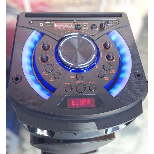 Take it outdoors, plug in your mics for karaoke, or connect via Bluetooth, USB, SD card, or AUX. Built-in LED lights pulse with your beats, setting the mood instantly.