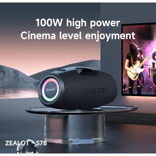 ZEALOT S78 Wireless Portable Speaker 100 Watt Rechargeable Speaker Portable Music Barrel Loud Stereo System with AUX Input, USB, TF Card NameParametersSpeaker power 100WBattery capacity 24000MAH Built-in batteryWaterproof rating IPX7 waterproofProduct Features AUX/TWS/USB/TF Card/RGB LightsProduct size 410*167*185mm