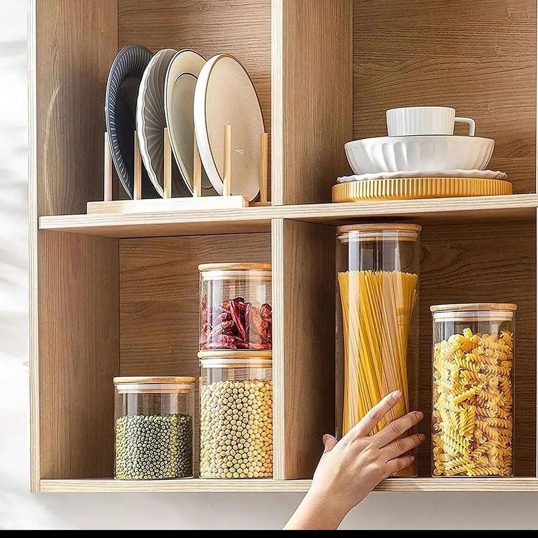 【Airtight Storage Jar】Each Spaghetti jar is well sealed with all-round silicone sealing loop around the wood cover, creating a moistureproof environment to keep your dry food inside clean and fresh.