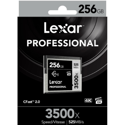 Key Features 256GB Storage Capacity CFast 2.0 Card Type 3500x Speed Rating Max. Read Speed: 525 MB/s Max. Write Speeds: 445 MB/s Includes Lexar Image Rescue Software
