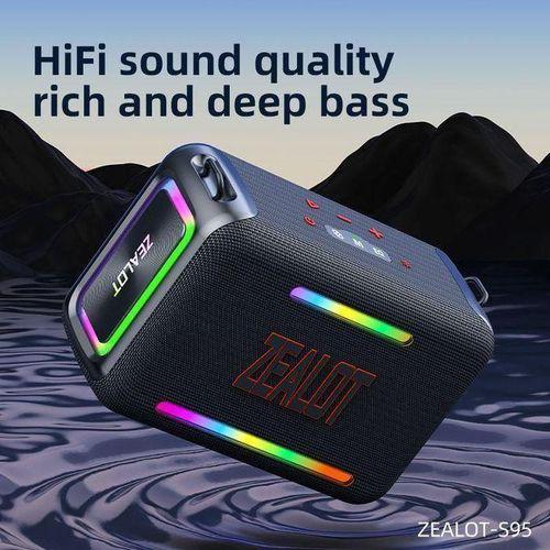 1.75W Bass with Dual Pairing - To achieve the incredible 120W, Zealot S95 comes with an exclusive custom 2 woofers and 1 tweeter. Combine with DSP for top of the line bass stereo effect. Crazy and shocking. In addition, it is equipped with a dual pairing function, like a live concert experience, 240000 Mah Battery - More power, Better bass. What else? To support the perfect performance of the speaker, it uses a large capacity of 24000 mah battery as the base of the speaker, up to 50 hours of playback time, and can charge phones, tablets and other devices while playing3.Different Sound Effects - On Sound, Zealot all the investment is worth it. You want clear voices? Or a more bass effect. EQ button for you to achieve, 3 sound modes, to meet your listening preferences. The clear and dynamic mode light changes allow you to use at willAre you still worried? - Best Bluetooth 5.2 technology, up to 100 feet of connection.