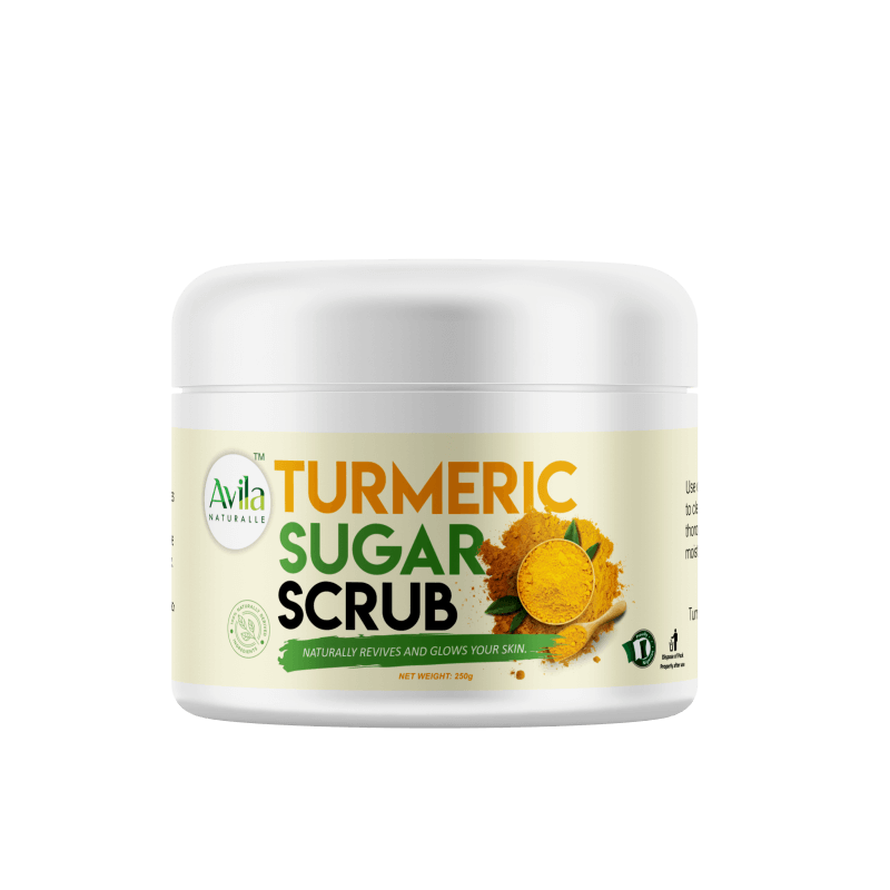 Avila Turmeric Sugar Scrub offers a transformative exfoliation experience that unlocks a multitude of skincare wonders: Antiseptic and Antifungal Power: As you exfoliate with Avila Naturalle Turmeric Sugar Scrub, you activate its potent antiseptic and antifungal properties. This dynamic combination works harmoniously to combat acne, fade acne scars, and even address unwanted facial hairs. Plus, it’s your ally in preventing future breakouts. Skin Revival: Watch your skin come to life as our scrub works its magic. It rejuvenates your skin, revealing its innate radiance, and making it glow naturally.