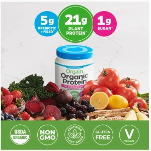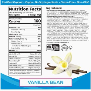 Orgain Organic Protein + 50 Superfoods Powder, Vanilla Bean – 21g of Protein, Vegan, Plant Based, 5g of Fiber, No Dairy, Gluten, Soy or Added Sugar, Non-GMO big size 918g