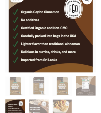 0 reviews for FGO Organic Ceylon Cinnamon Powder, 100% Raw from Sri Lanka 454g ,