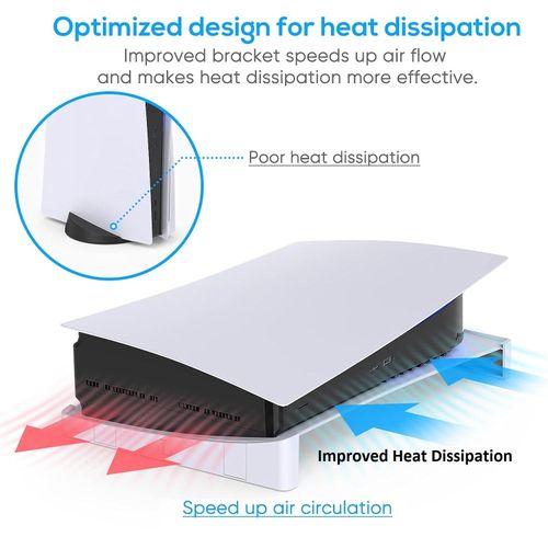 Lay down your PS5 console safely without scratching the panels and fit more in your entertainment center. Allows you to lift your console to ensure maximum air flow for better heat dissipation.